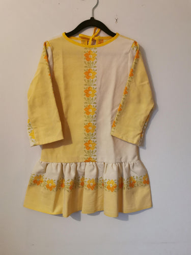 kjole - gul med blomster - str. 98-104
