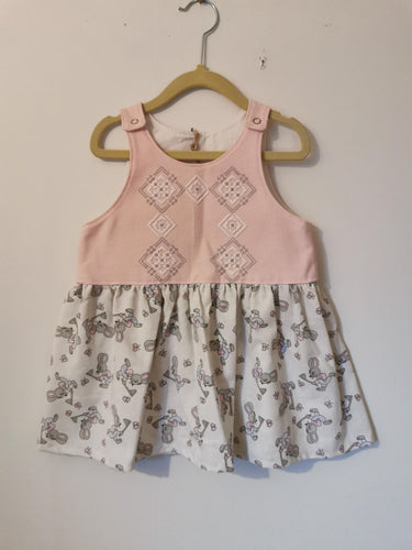 Spencerkjole, lyserødt broderi & kaniner - str. 92