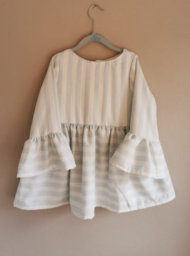 Flæsekjole, blå/hvide striber, str. 104