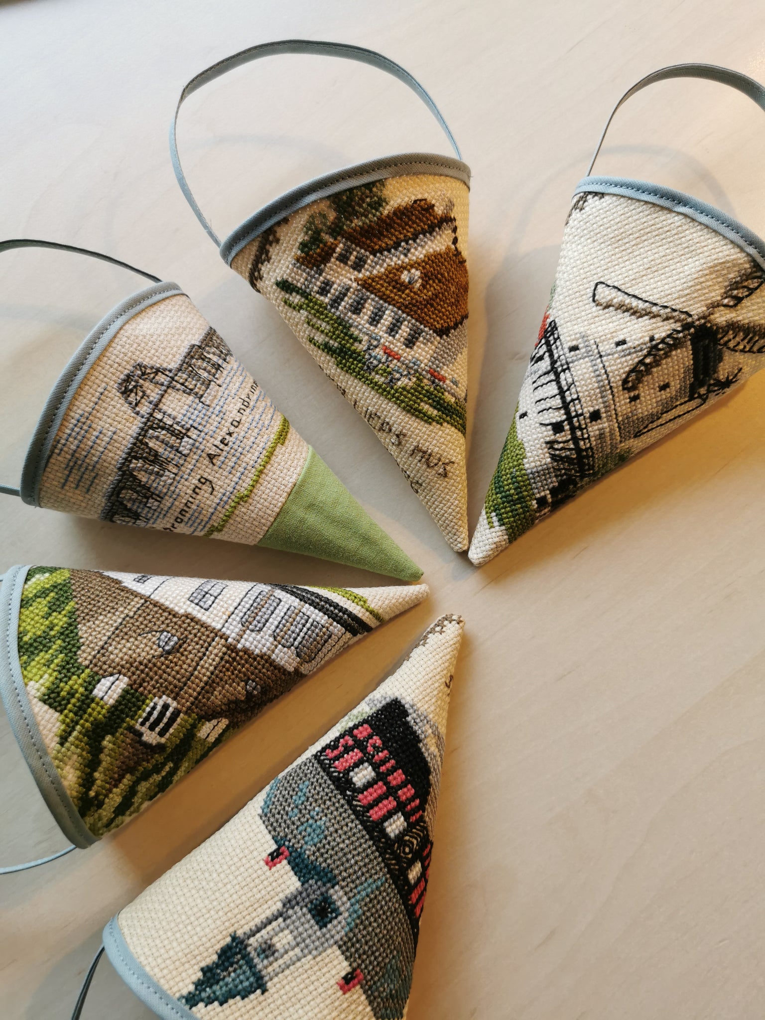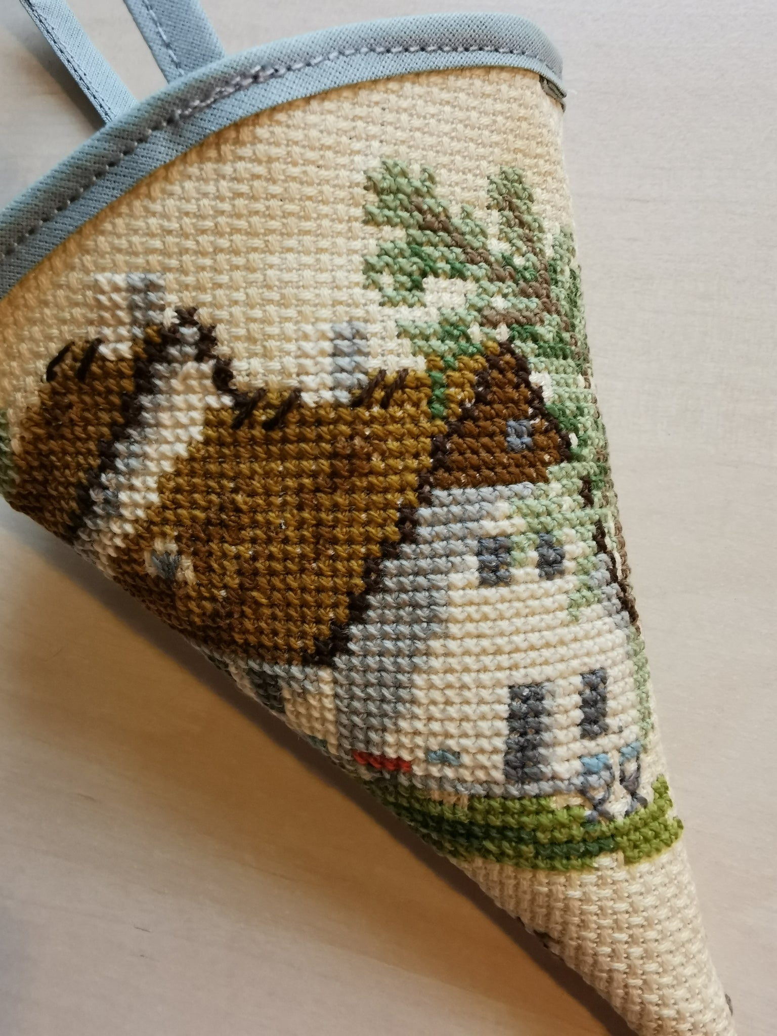 Kræmmerhus syet af håndbroderet vintagetekstil.