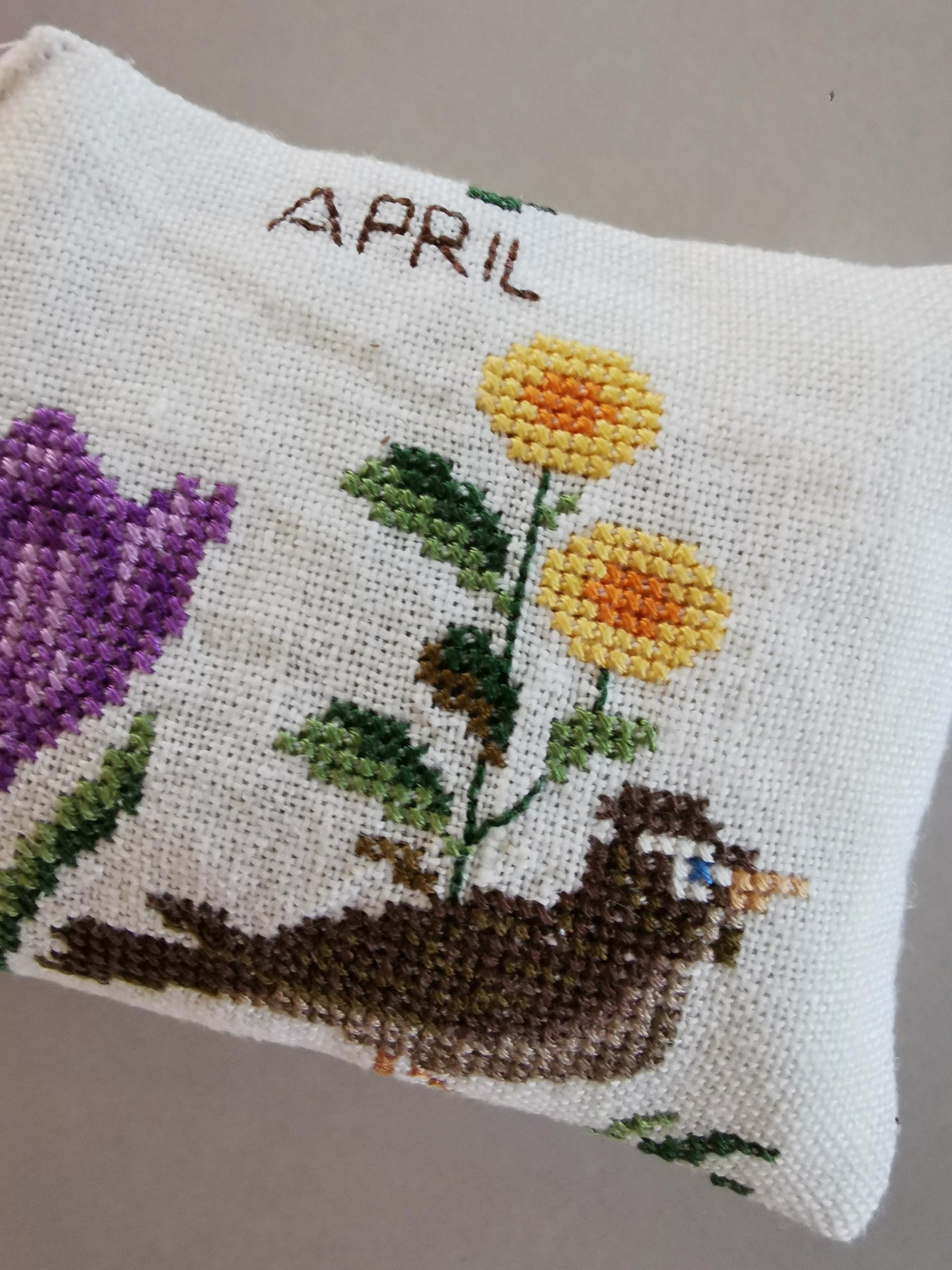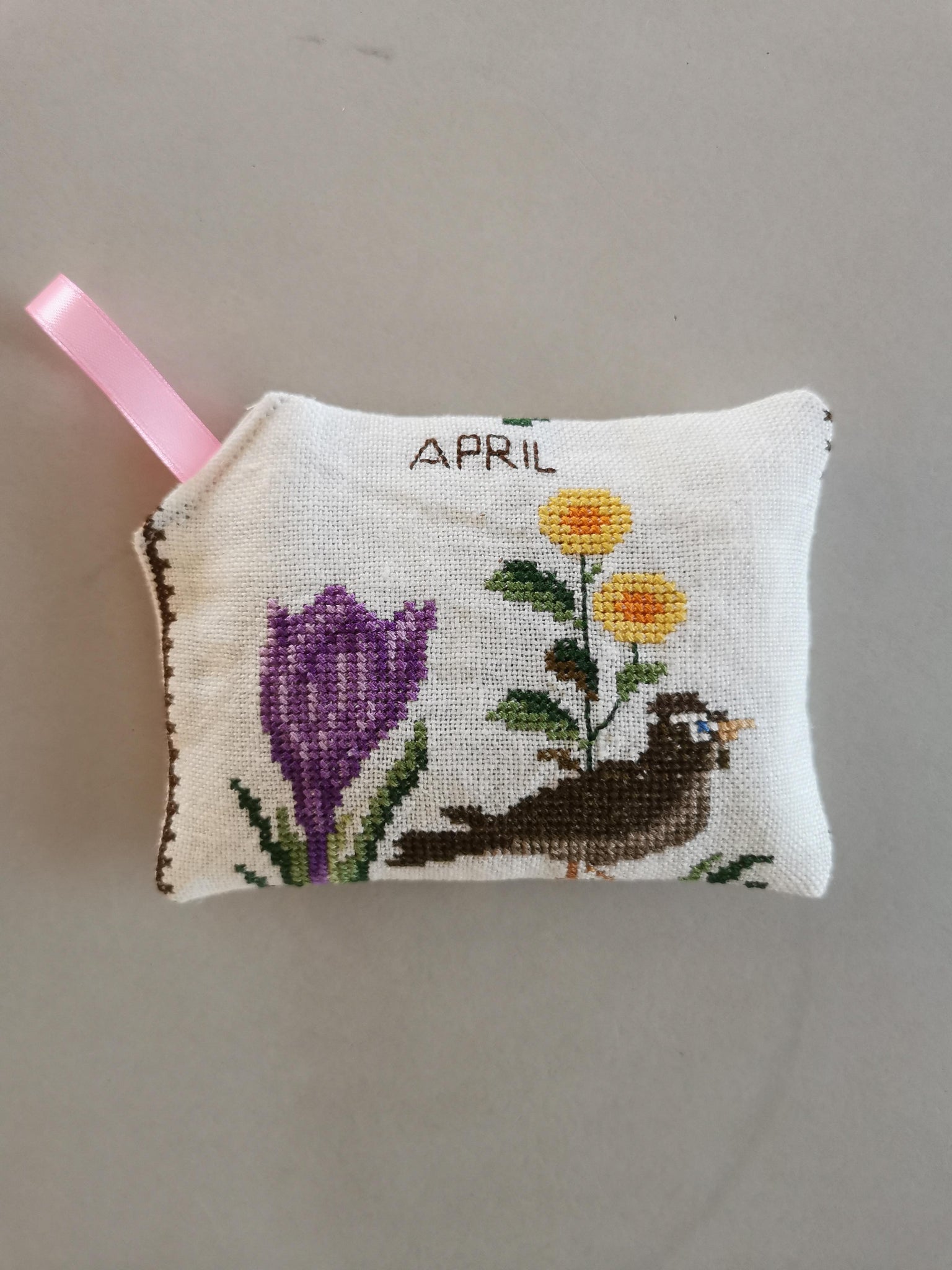En fin lille duftpose syet af håndbroderet genbrugsstof.