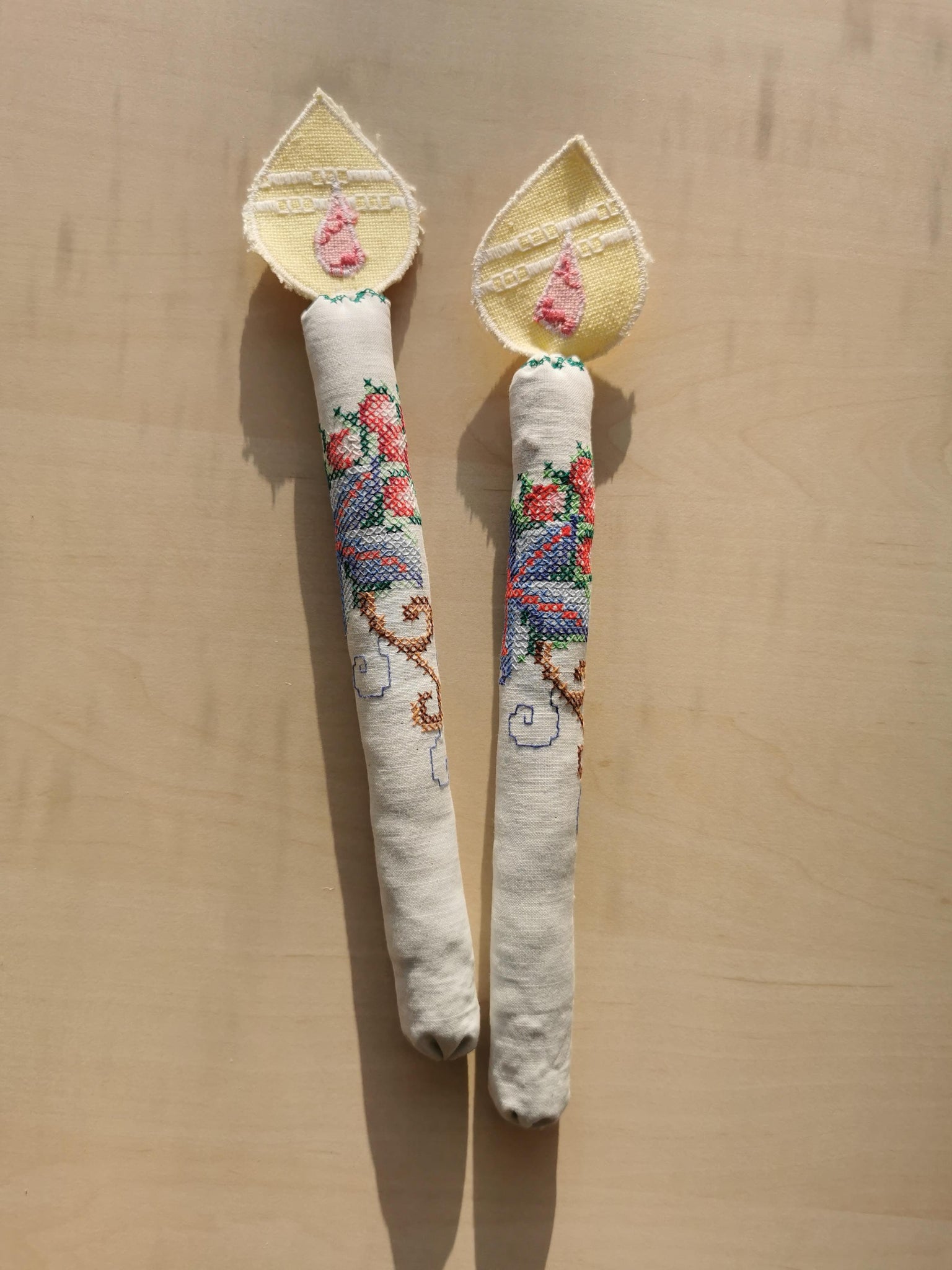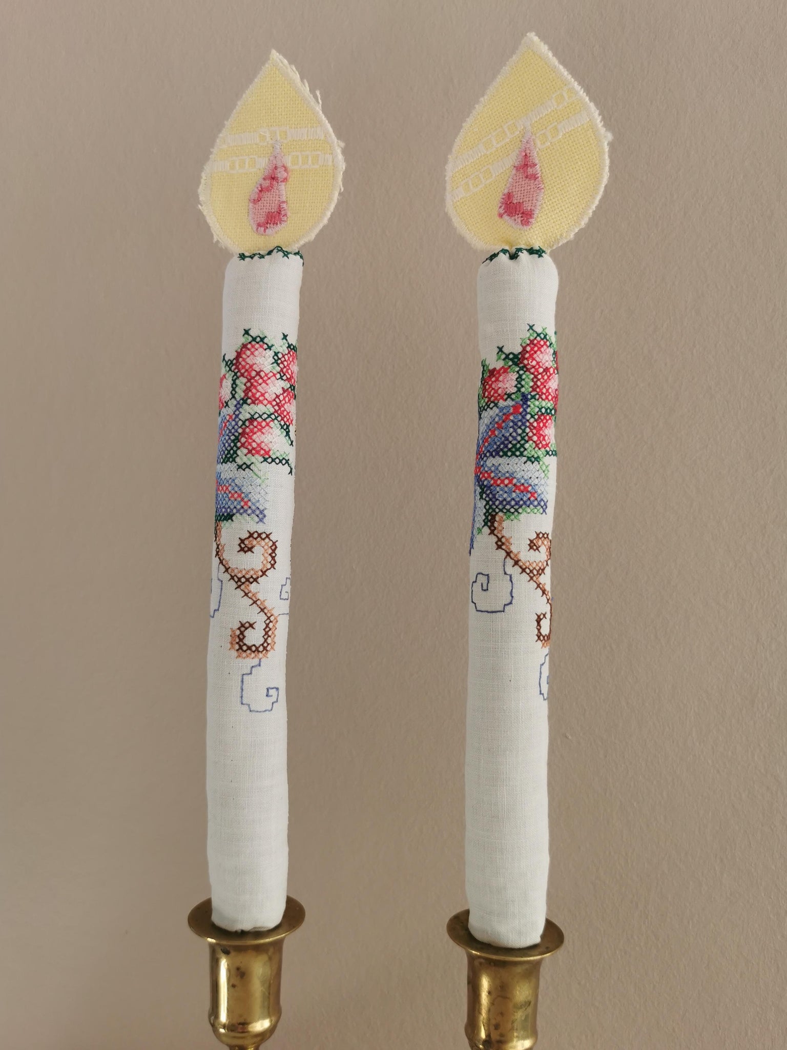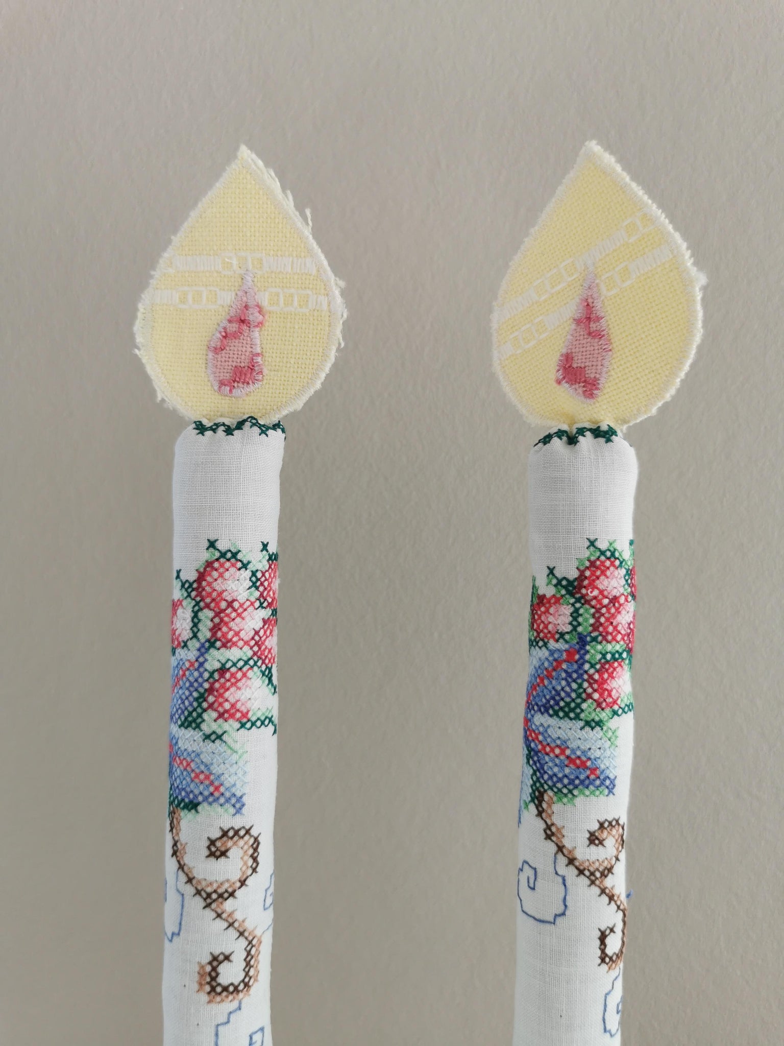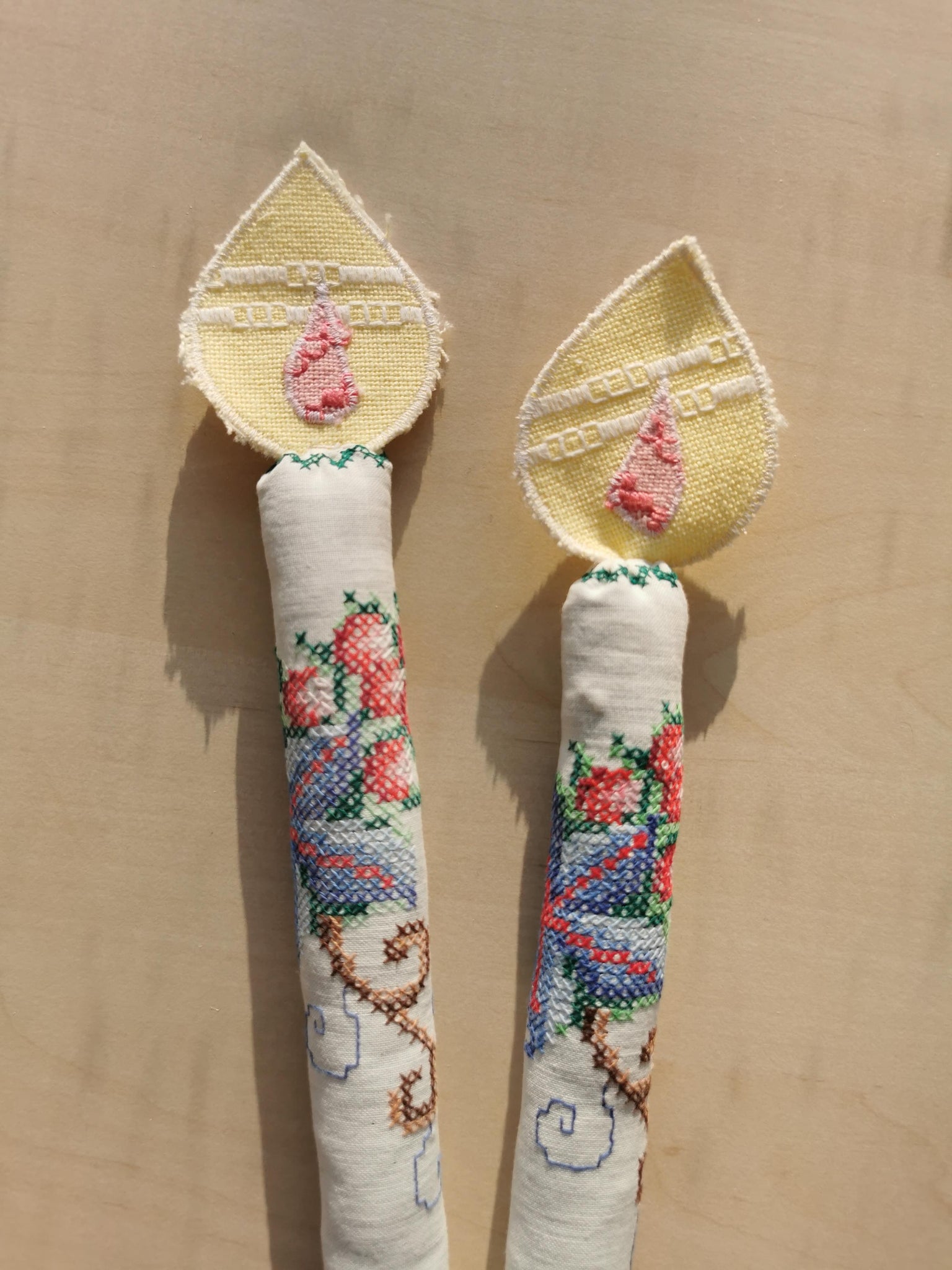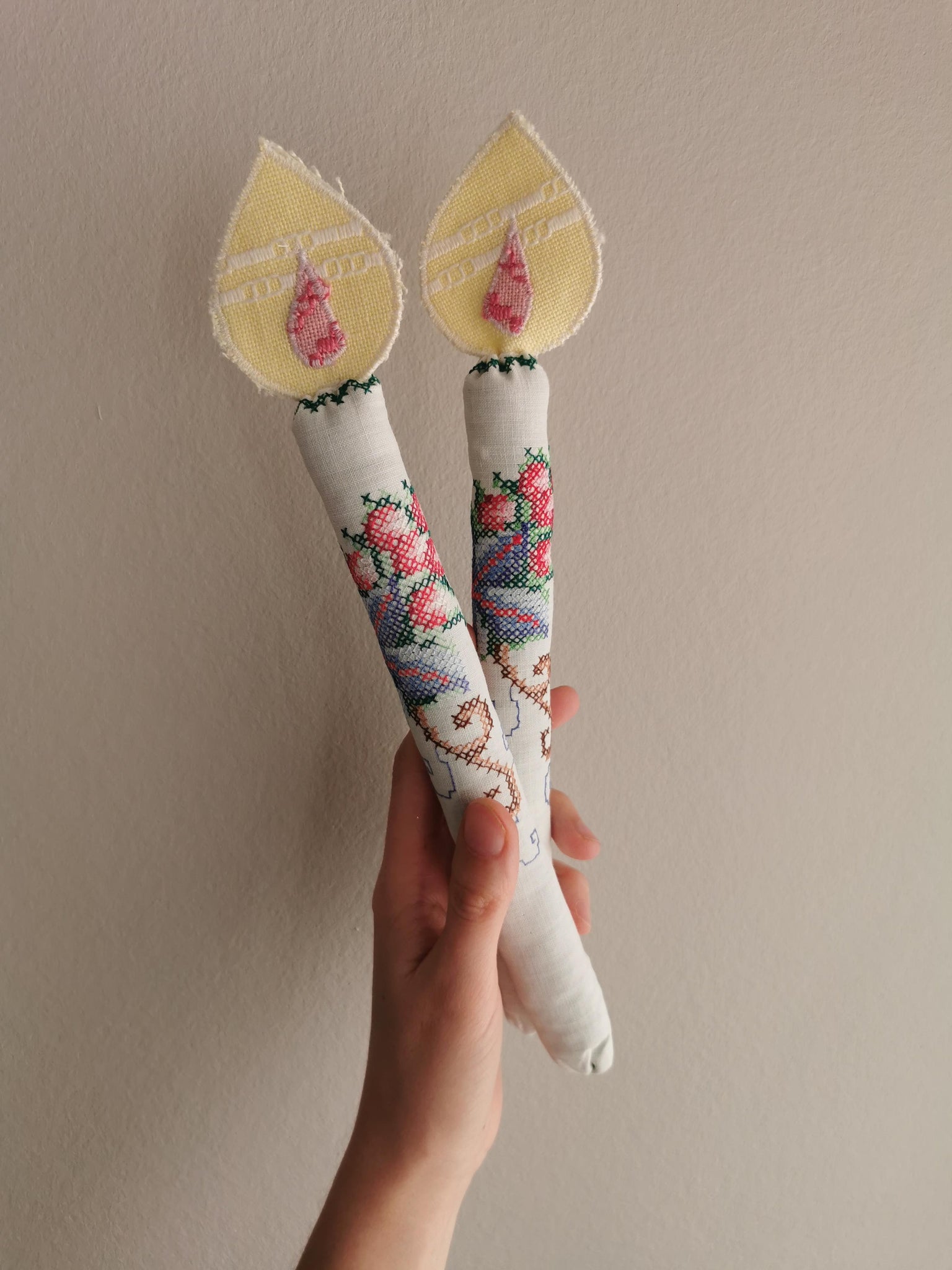Både lys og den lille flamme er syet af nøje udvalgte vintagematerialer.