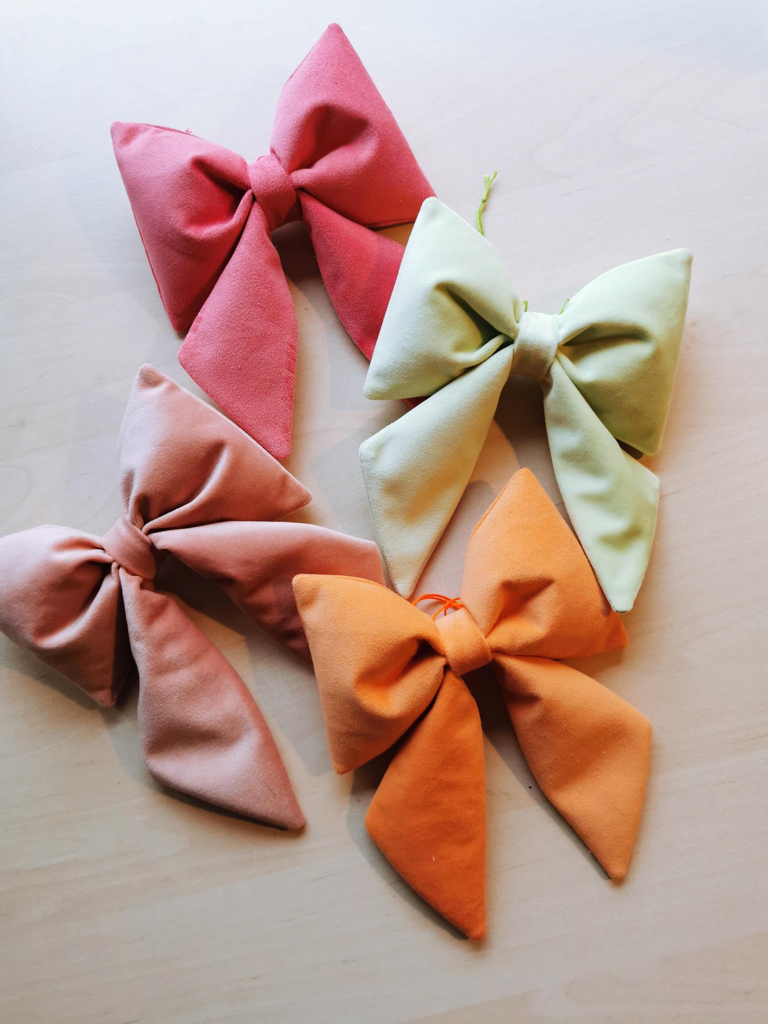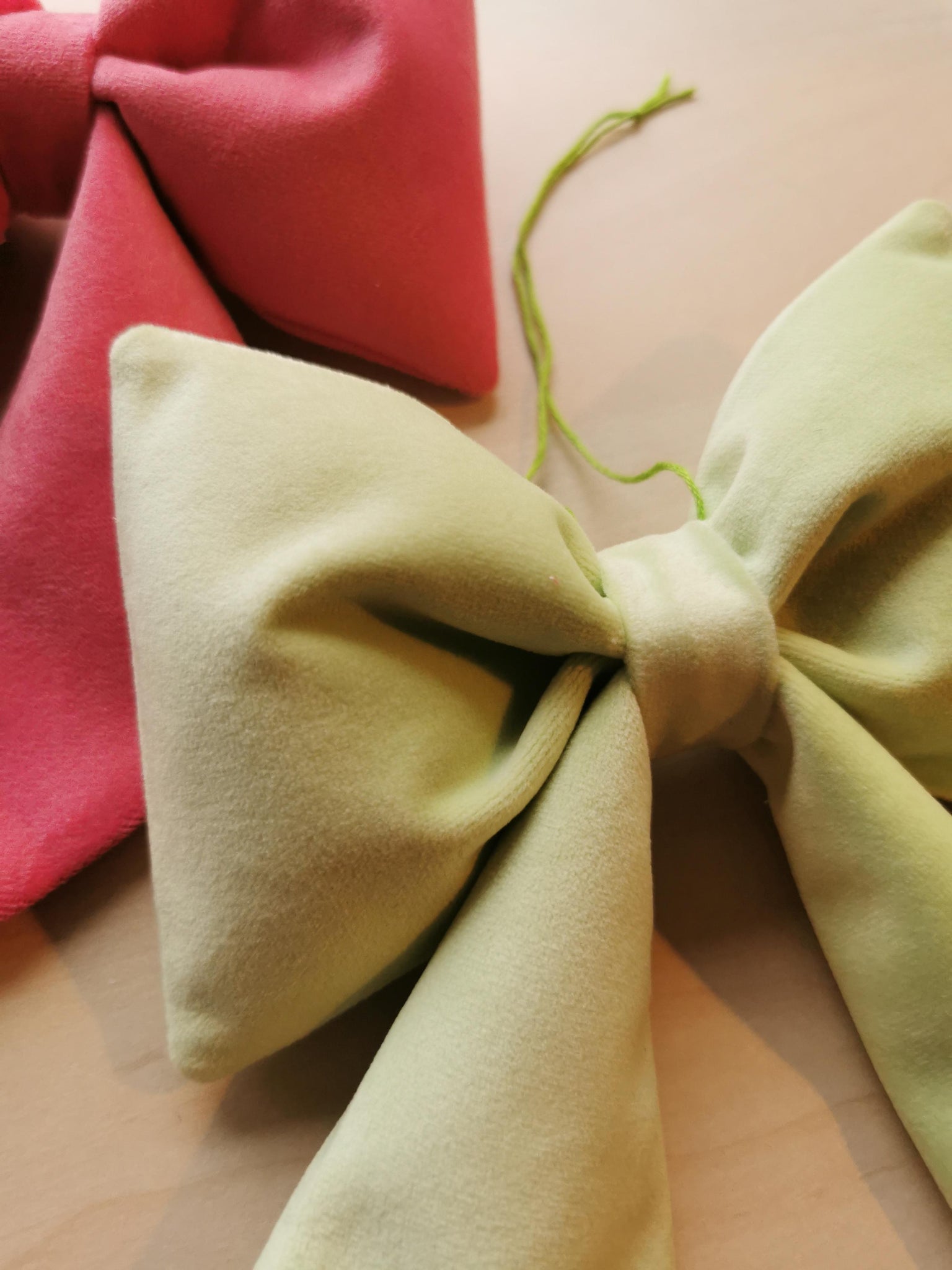 En fin sløjfe til ophæng syet af blødt, mintgrønt velour.