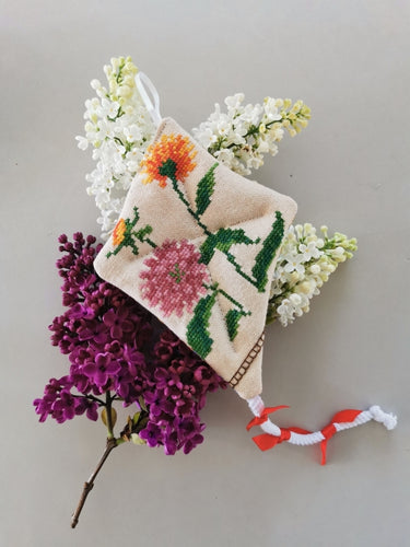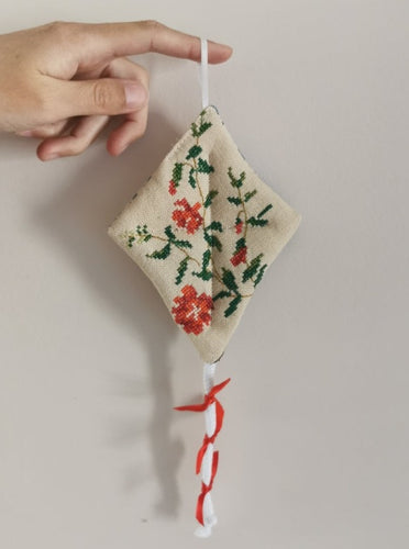 Drageophæng med lavendelfyld, håndbroderet og Liberty, rød