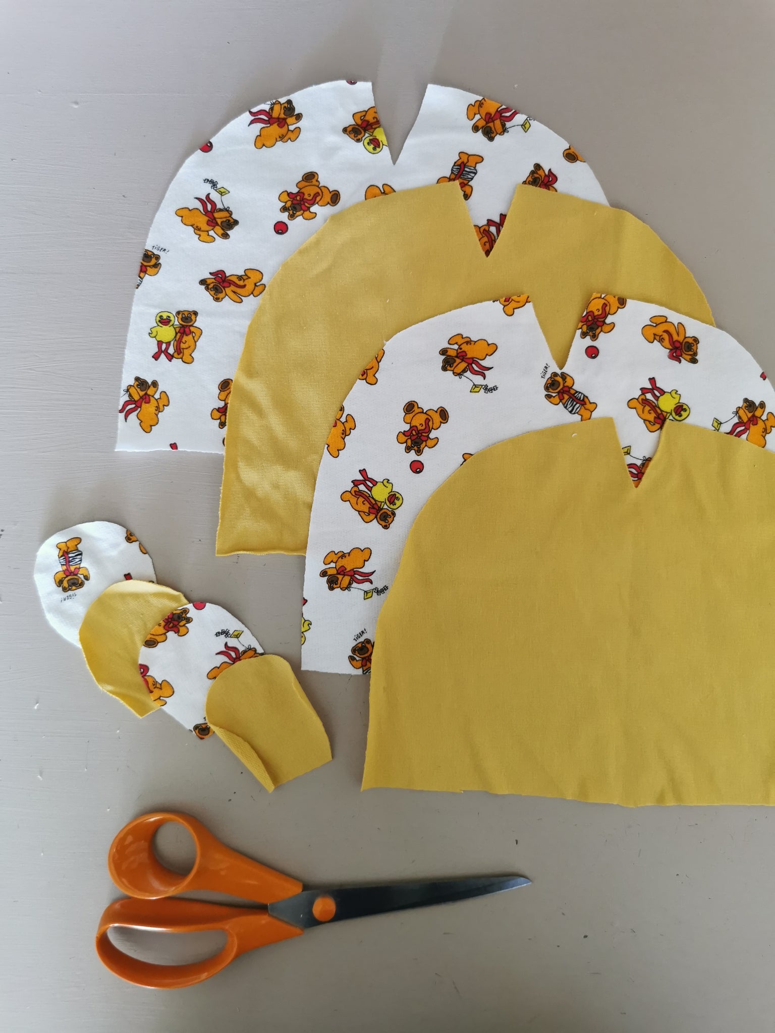Mønster samt udførlig billedvejledning til at sy en beanie - eller hue, til børn fra str. 3 mdr-6 år.