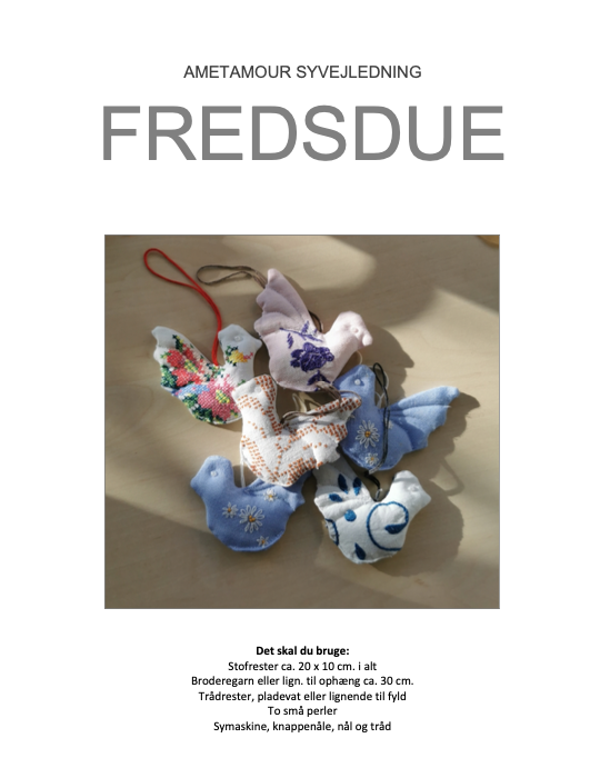 PDF printbart mønster samt udførlig billedvejledning til at sy en fredsdue.