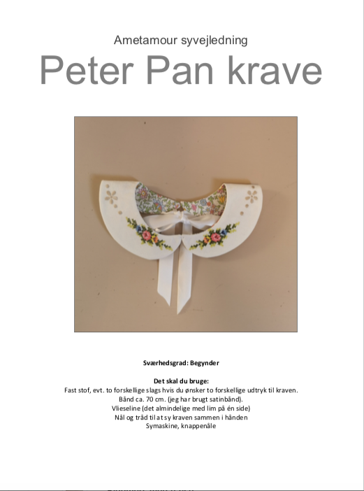 Ametamour symønster med udførlig billedvejledning til at sy en pyntekrave, eller "Peter Pan krave" til børn.