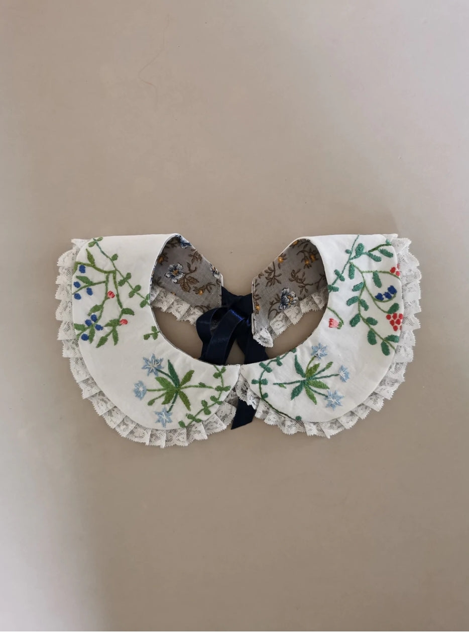 Du får mønster og vejledning til både at sy en pyntekrave uden flæsekant, samt en krave med flæsekant.
